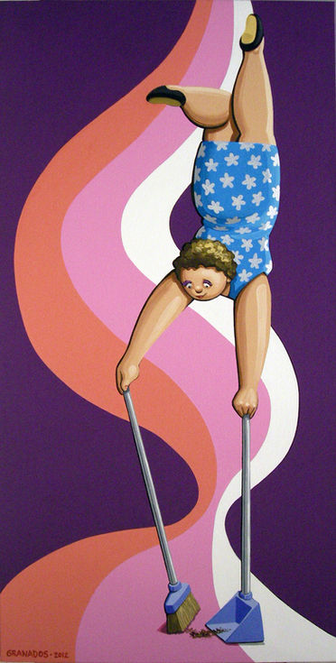 Javier Granados is a Spanish pop artist known for his vibrant colors and stylized depictions of voluptuous female figures, evoking humor and cheerfulness. His works portray everyday women through a pop art lens, with full-bodied figures and smooth skin reminiscent of Botero's protagonists, enhancing a soft and gentle atmosphere. Granados's use of clay in his object works brings back memories of childhood play with sand, dolls, and pretend games, while incorporating social critique and ironic messages, making his pieces compelling and memorable.