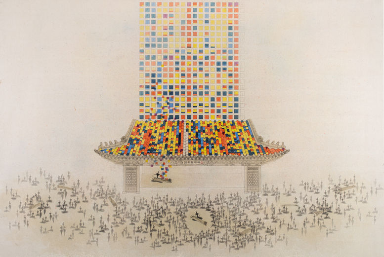 정간보, 팔음(八音), 이음성(異音性, heterophony) 등 한국 전통음악의 고유의 구조를 분석하고, 그것을 색과 형으로 다시 짜 맞춘 작가의 화폭은 보는 이로 하여금 ‘그림을 듣는’ 새로운 감각을 경험을 유도한다.