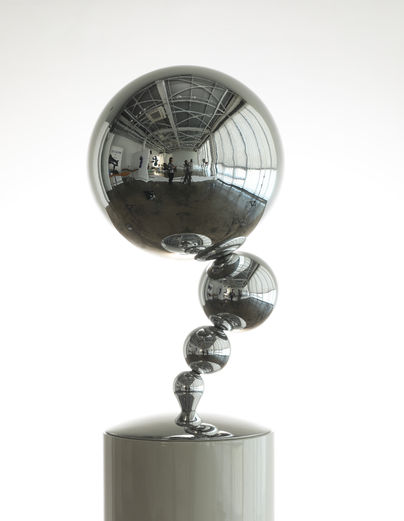 Primarily working with stainless steel, Shin creates pieces that infinitely reflect both their interior and exterior, breaking down the boundaries between reality and illusion. In front of his sculptures, onlookers are prompted to contemplate the 'relations' of existences reflecting each other endlessly and the 'energy of life' that stems from these connections.